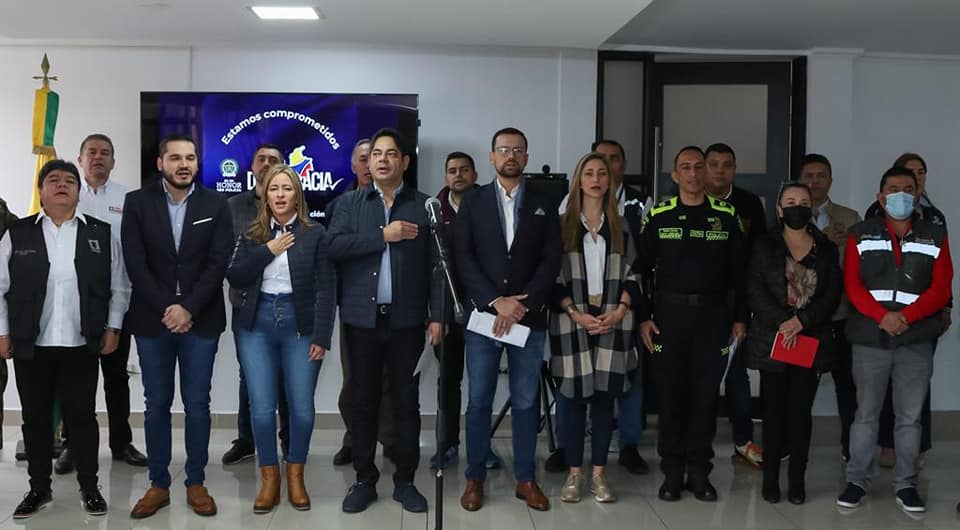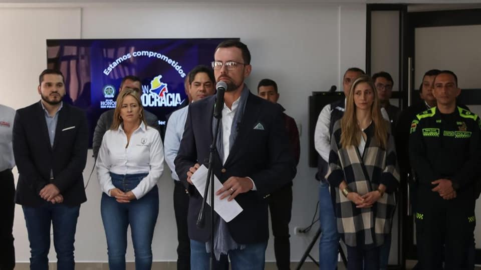 El Gobernador de Caldas, Luis Carlos Velásquez Cardona, junto al Ministro de Deportes, Guillermo Herrera, y demás autoridades, dieron un parte de tranquilidad en esta jornada de elecciones presidenciales en el departamento.